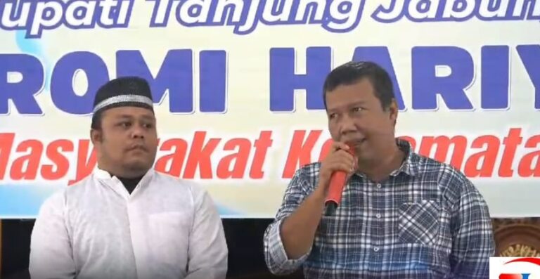 Tanjabtim– Bupati Kabupaten Tanjung Jabung Timur, Romi Hariyanto dan Wakil Bupati Robby Nahliyansyah kunjungan ke Kelurahan Mendahara Ilir, Kecamatan Mendahara, di Masjid Agung Darul Iman, Kamis 16 Januari 2025.