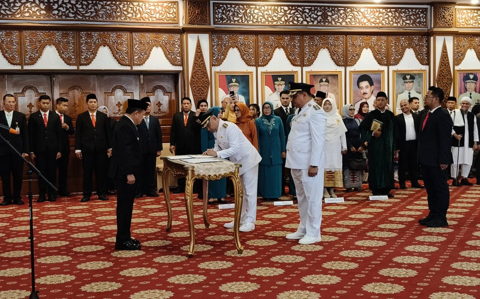Dedy-Dayat dilantik oleh Gubernur Jambi Al Haris di auditorium Rumah Dinas Gubernur Jambi, Senin (26/05/2025) pagi.