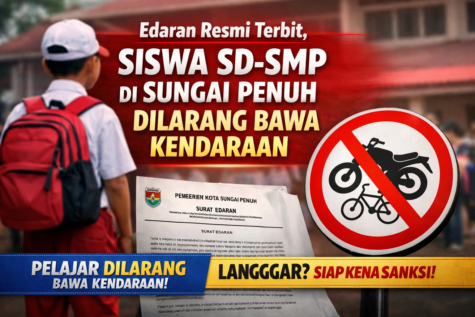 Jambi- Pemerintah Kota (Pemkot) Sungai Penuh, Jambi, resmi menerbitkan surat edaran yang melarang siswa tingkat SD hingga SMP membawa kendaraan sendiri ke sekolah. Kebijakan ini diberlakukan sebagai langkah tegas untuk meningkatkan keselamatan pelajar sekaligus menekan potensi kecelakaan lalu lintas.