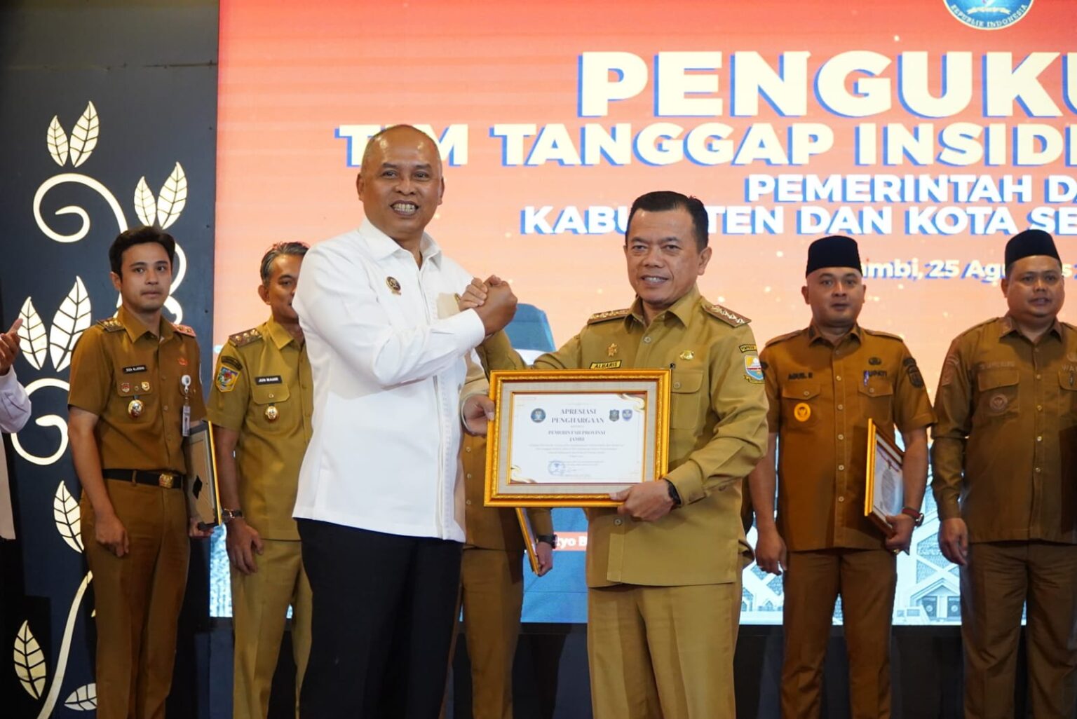Jambi- Gubernur Jambi, Al Haris menegaskan bahwa pemerintah daerah, baik di tingkat provinsi, kabupaten, maupun kota, merupakan bagian dari simbol negara yang menyimpan data-data penting dan rahasia negara. Oleh karena itu, kebutuhan akan keamanan siber di era digital saat ini menjadi sangat krusial. Hal tersebut disampaikan Gubernur pada kunjungan kerja Kepala Badan Siber dan Sandi Negara (BSSN) Republik Indonesia Letjen TNI (Purn) Nugroho Sulistyo Budi, M.M, M. Han dalam Rangka Pengukuhan Tim Tanggap Insiden Saber (TTIS) pada Pemerintah Daerah Kabupaten dan Kota Se- Provinsi Jambi, bertempat di Auditorium Rumah Dinas Gubernur Jambi, Senin (25/08/2025).