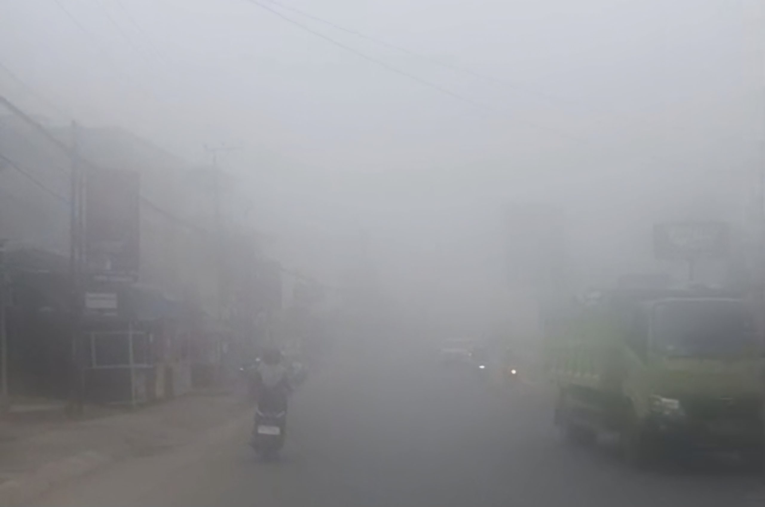 Kabut pekat yang terjadi juga bukanlah merupakan dampak dari kebakaran hutan dan lahan (karhutla) melainkan kabut uap air dampak cuaca dingin atau hujan yang terjadi pada pagi kemaren di Kota Jambi.