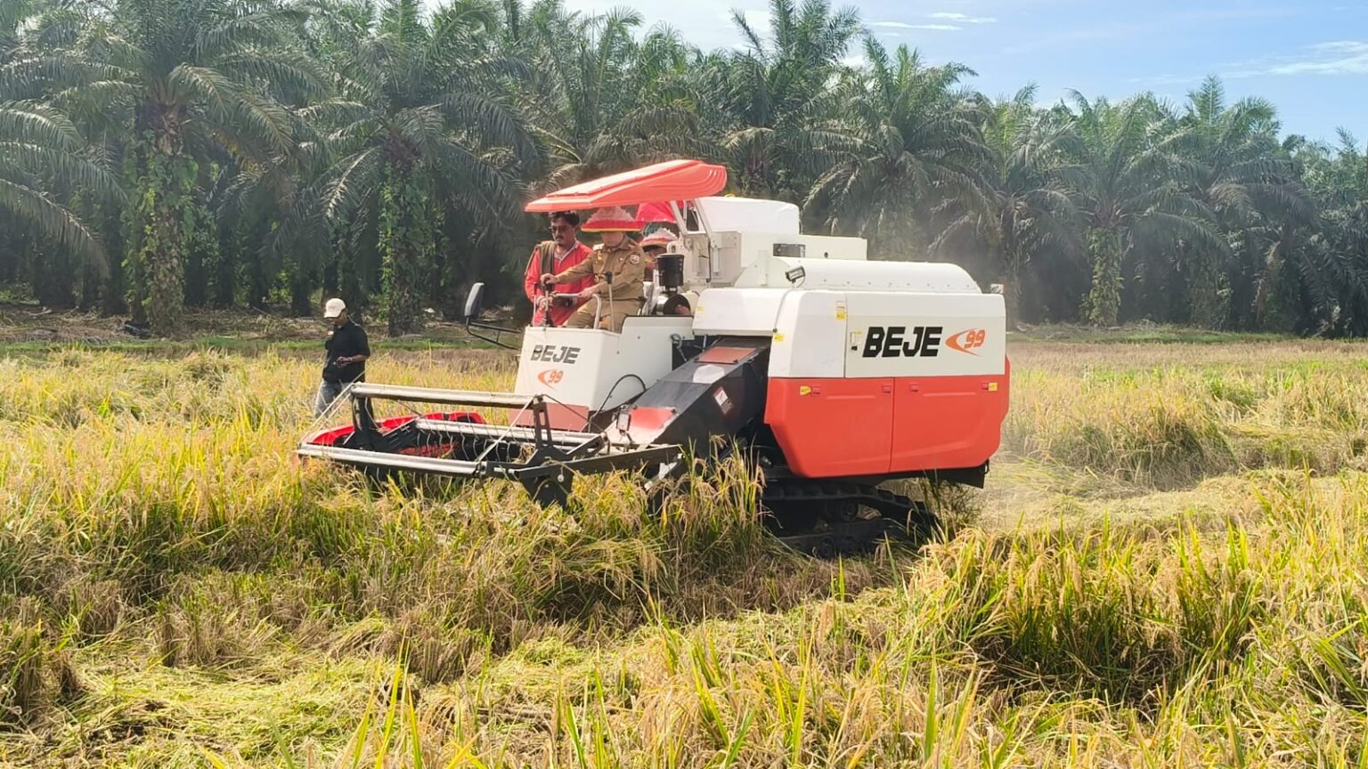 Selain bantuan oplah cetak sawah, Gubernur Al Haris juga menyerahkan bantuan dua unit combine harvester dan penyerahan alat mesin pertanian kepada brigade pangan.