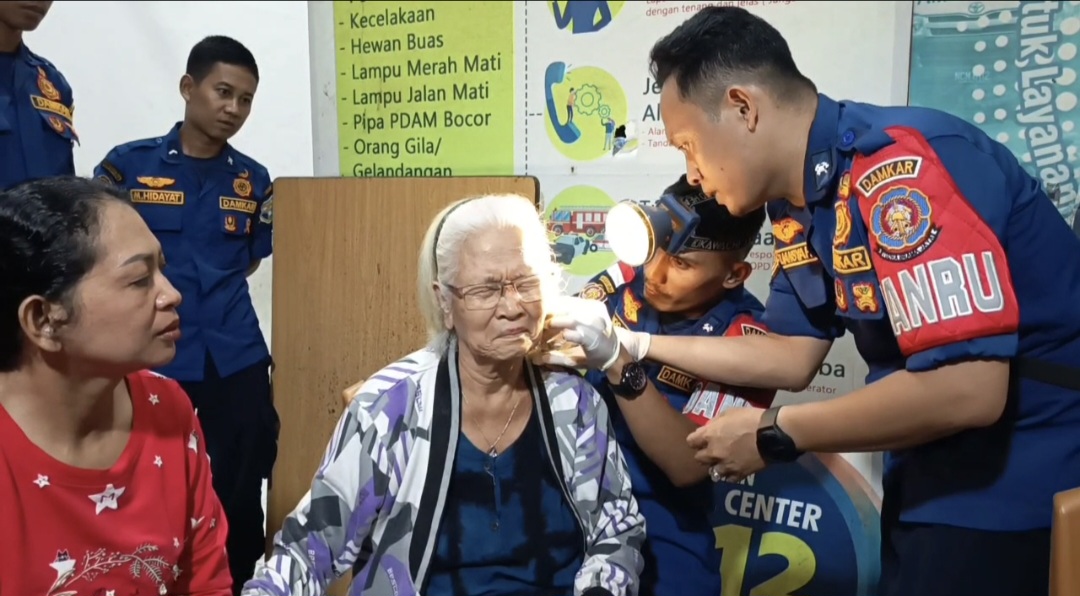 Hampir 10 menit upaya evakuasi pelepasan anting-anting wanita lansia ini dilakukan. Saat itu, petugas dengan penuh kehati-hatian dan penuh kesabaran melakukan pelepasan anting-anting lansia tersebut.