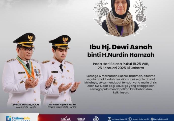 Diketahui, kabar duka ini diterima pada malam hari, Selasa (25/2/2025). Wali Kota Jambi, Maulana, bersama Wakil Wali Kota Diza Hazra Aljosha, menyampaikan belasungkawa dan doa agar almarhumah diberikan tempat yang mulia di sisi Allah SWT.
