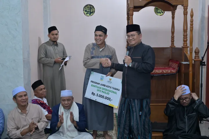 Penyerahan tersebut dilakukan dalam pelaksanaan kegiatan Safari Ramadan 1447 Hijriah tahun 2026 Pemkot Jambi di malam kesepuluh Ramadan.